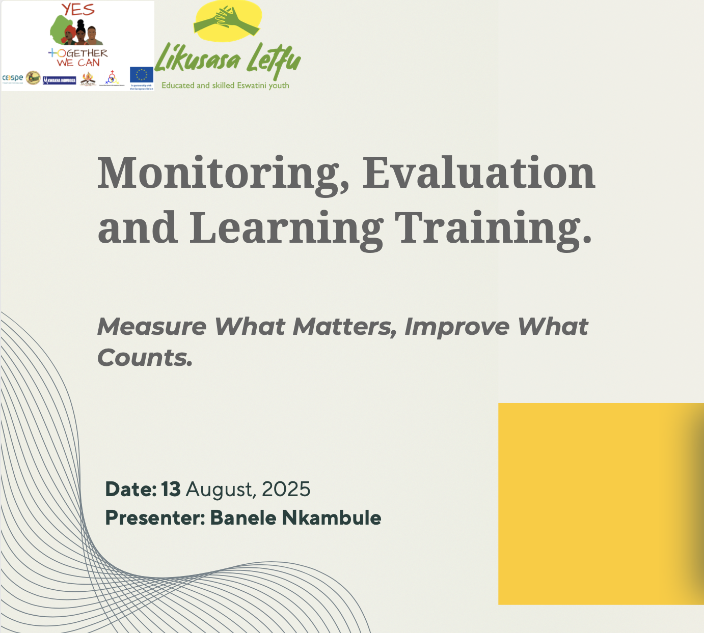 Monitoring, Evaluation and Learning Training.