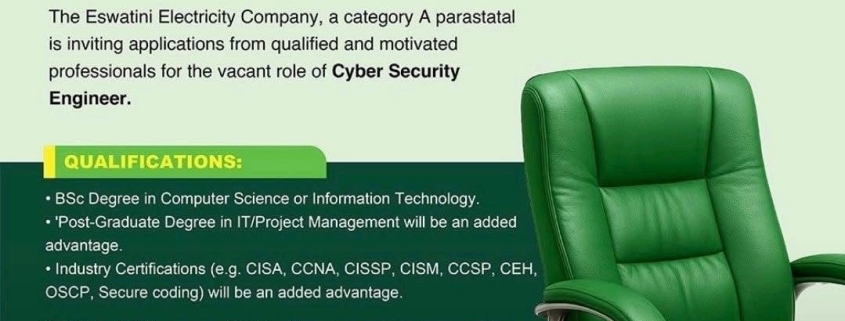 Microsoft, Linux stack, SIEM, cloud platforms, ICS/SCADA systems and NIST/ISO 27001, ISO/IEC 42001, IEC 62443, CSF, GDPR/Eswatini Data Protection frameworks.