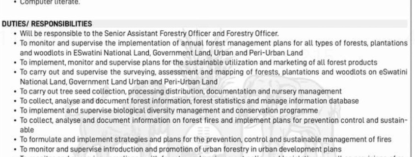 • Will be responsible to the Senior Assistant Forestry Officer and Forestry Officer.