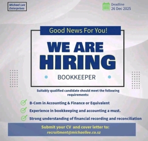 Michael Lee Enterprises Eswatini is looking for a qualified and experienced Bookkeeper with strong skills in financial record management, reconciliation, financial reporting and compliance support