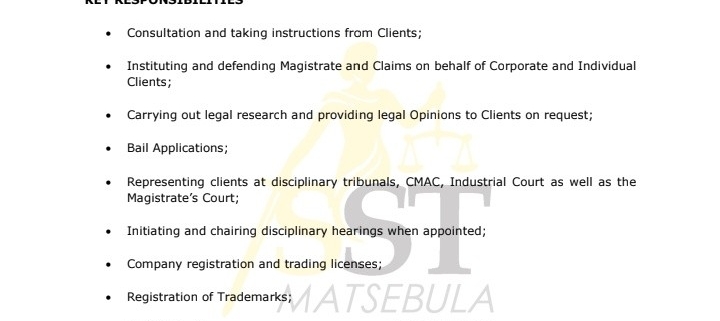 SST MATSEBULA ATTORNEYS invites suitable and qualified candidates for the above-mentioned position.