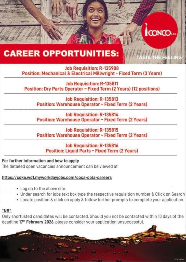 You are here: Home1 / CONCO – Vacancies