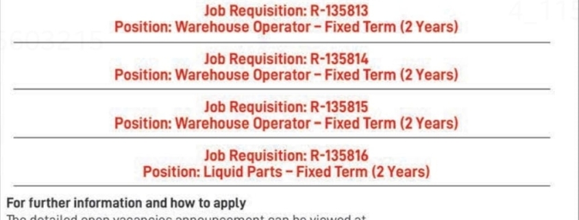 Position: Warehouse Operator – Fixed Term (2 Years)