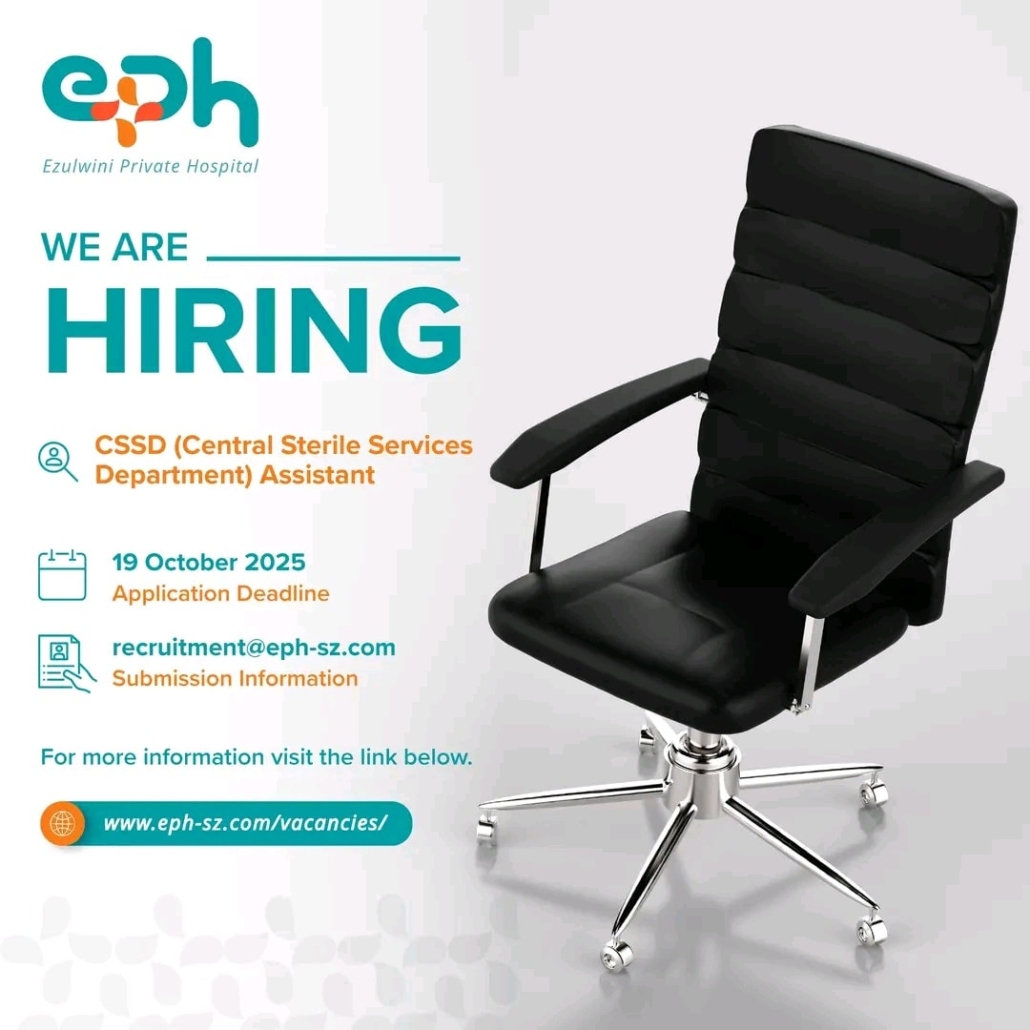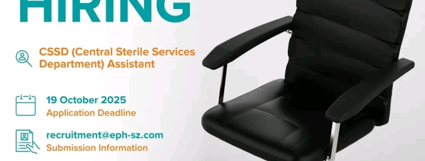 If you qualify for this position and want to apply, please email your updated CV and motivation letter to recruitment@eph-sz.com by no later than midday on the 19th of October 2025.