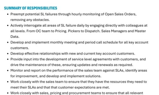 Actively interrogate all areas of SL failure daily by engaging directly with colleagues at all levels, from OC team to Pricing, Pickers to Dispatch, Sales Managers and Master Data.