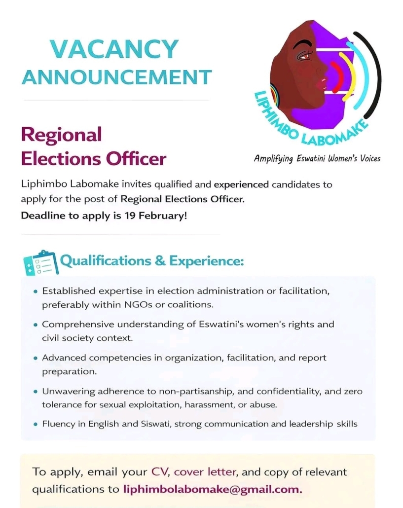 Liphimbo LaboMake is inviting applications for the position of Elections Officer to support and oversee regional election processes.