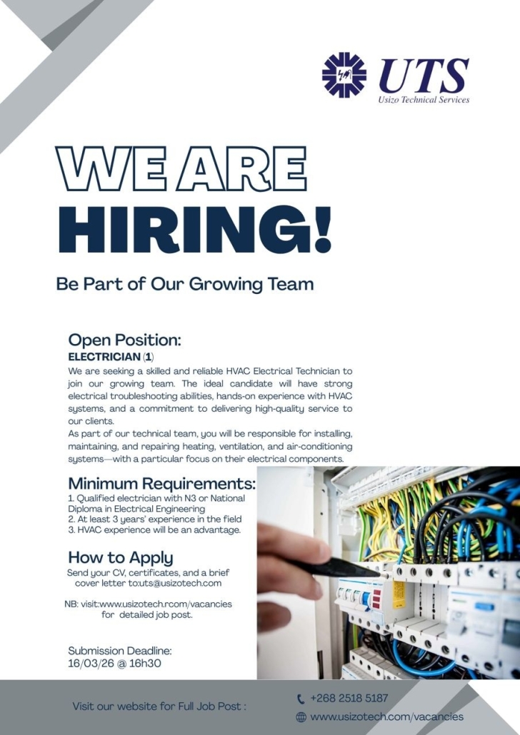 1. Qualified electrician with N3 or National Diploma in Electrical Engineering
