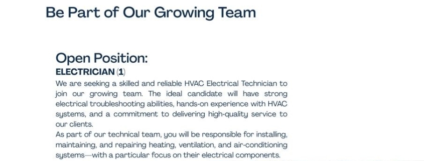 We are seeking a skilled and reliable HVAC Electrical Technician to join our growing team. The ideal candidate will have strong electrical troubleshooting abilities, hands-on experience with HVAC systems, and a commitment to delivering high-quality service to our clients.