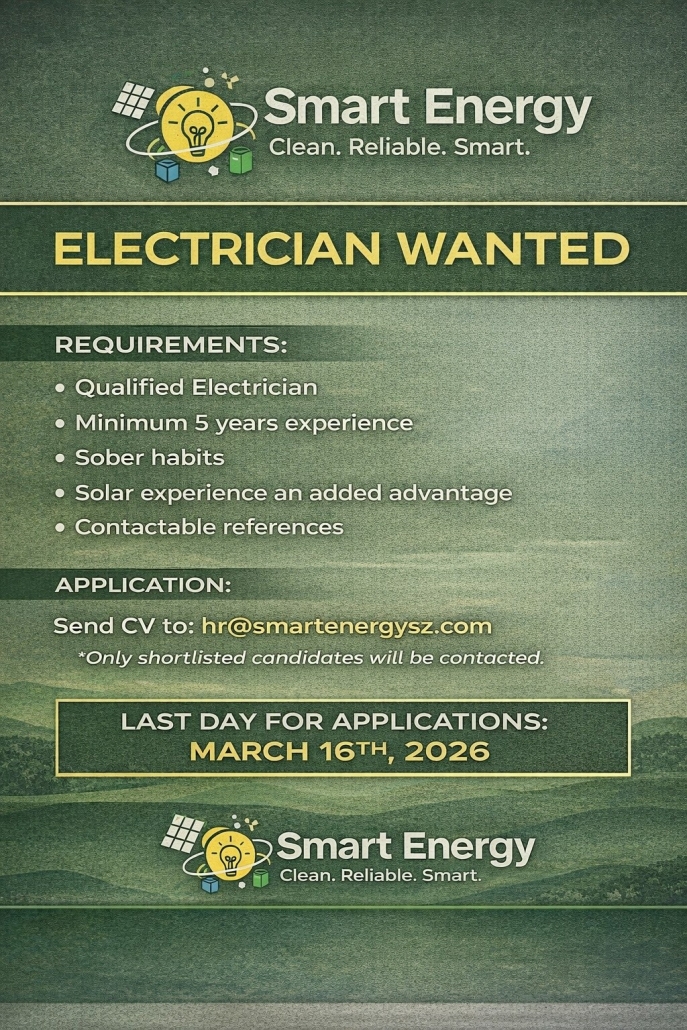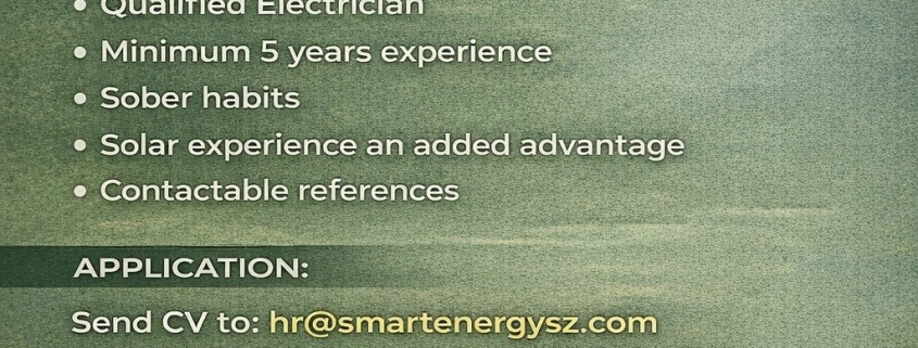 Send CV to: hr@smartenergysz.com