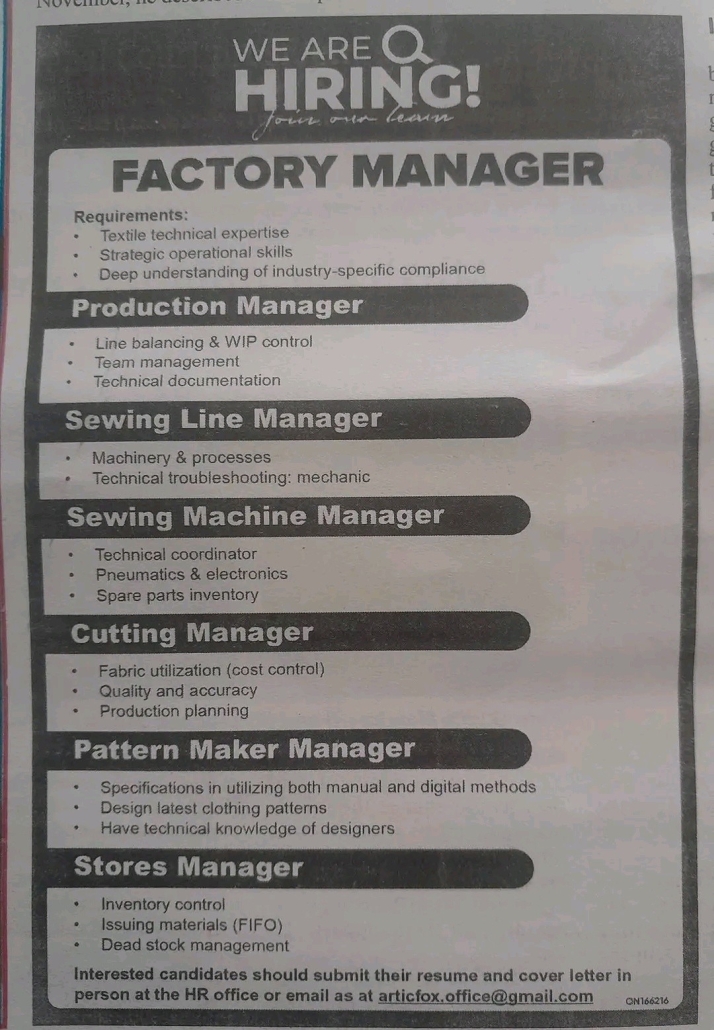 Interested candidates should submit their resume and cover letter in person at the HR office or email at articfox.office@gmail.com