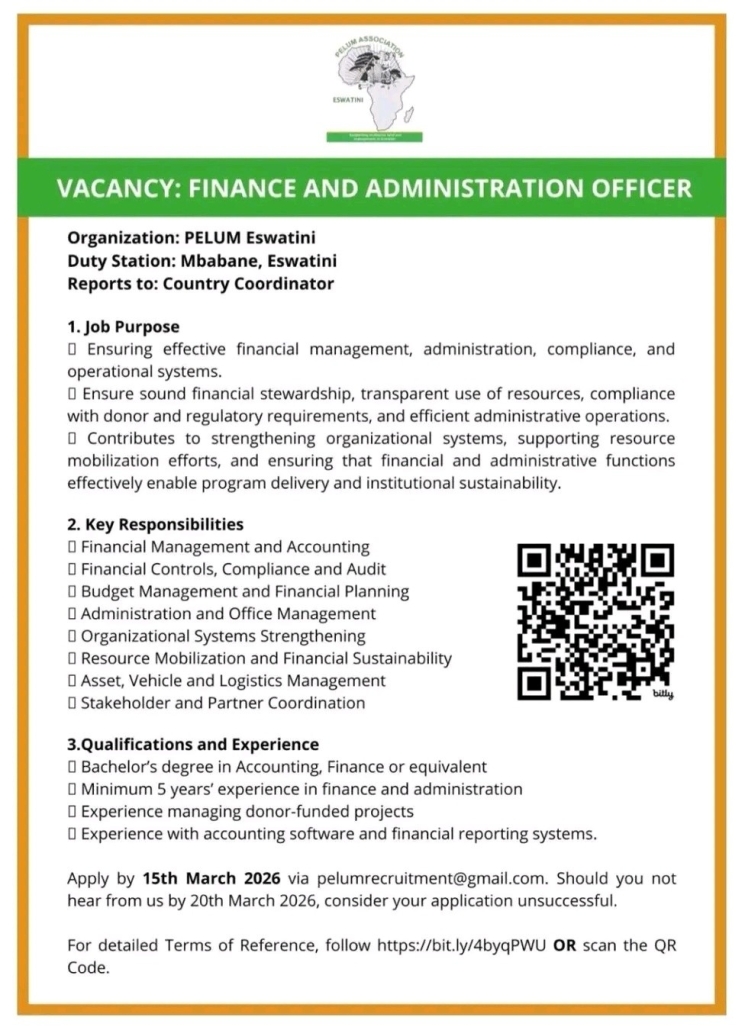 VACANCY: FINANCE AND ADMINISTRATION OFFICER