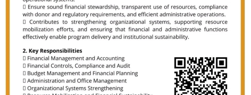 □ Contributes to strengthening organizational systems, supporting resource mobilization efforts, and ensuring that financial and administrative functions effectively enable program delivery and institutional sustainability.