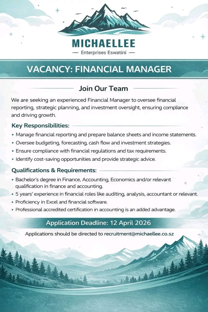 To apply for this job email your details to recruitment@michaellee.co.sz.