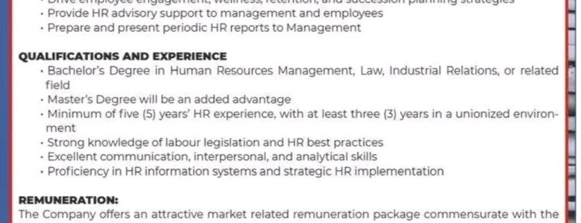 The Eswatini Observer Group of Newspapers seeks to appoint a dynamic and experienced Human Resources Officer to be based at its Head Office.