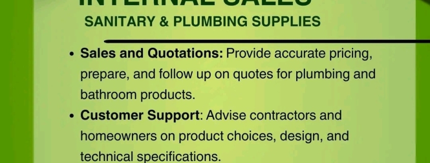 Sales and Quotations: Provide accurate pricing, prepare, and follow up on quotes for plumbing and bathroom products.
