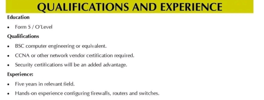 - Security certifications will be an added advantage.