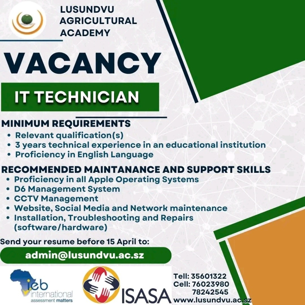 To apply for this job email your details to admin@lusundvu.ac.sz.