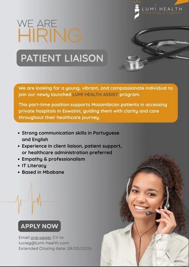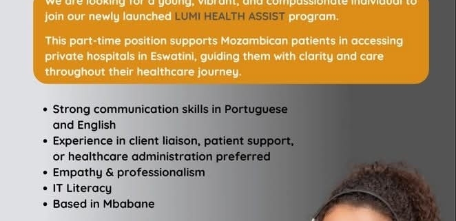 This part-time position supports Mozambican patients in accessing private hospitals in Eswatini, guiding them with clarity and care throughout their healthcare journey.
