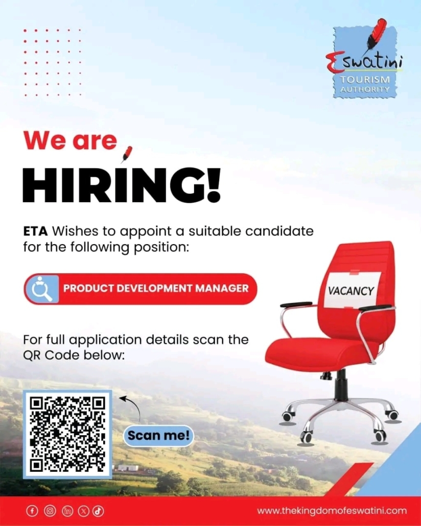 The Eswatini Tourism Authority Team is in search of a suitable and qualified candidate to fill in the position of Product Development Manager.