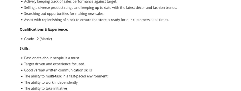 • Selling a diverse product range and keeping up to date with the latest décor and fashion trends.
