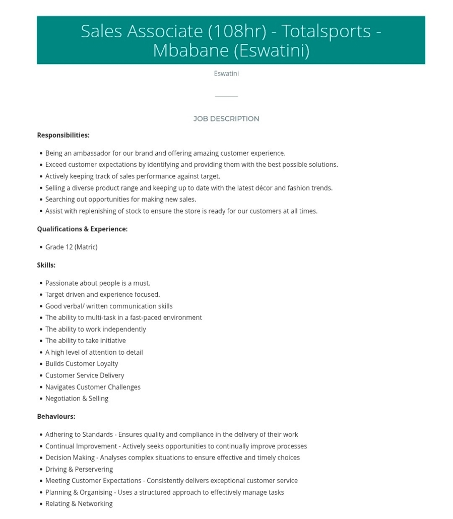 At Totalsports we’re all about PERFORMANCE, we INSPIRE, we’re AUTHENTIC, we’re MOTIVATING, we INNOVATE, and we are REAL. We are looking for a team player who embodies a passion for sports and keeping fit and healthy, as well as an individual who develops, inspires, motivates and drives a high-performance.