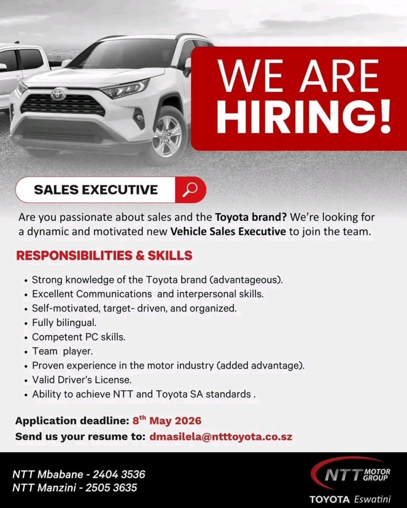 WE ARE HIRING – NTT TOYOTA ESWATINI