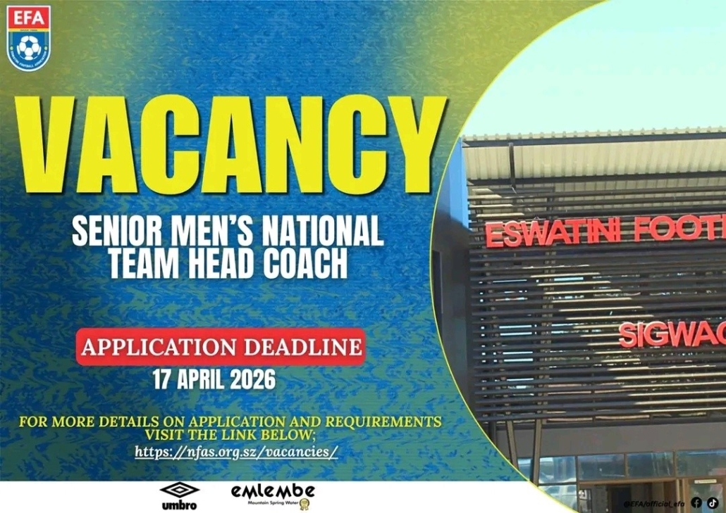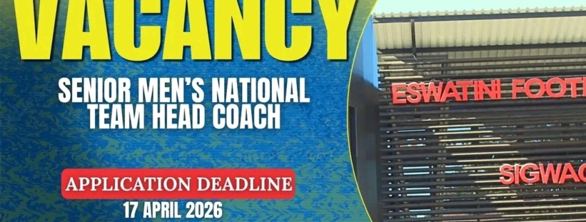 All Applications must be addressed to the Chief Executive Officer, Eswatini Football Association; P. O. Box 641, Mbabane, H100; with a detailed CV and copies of Diplomas/Certificates submitted to the Chief Executive Officer at Sigwaca House, Sheffield Road, Mbabane Industrial Sites or by email to: info@nfas.org.sz not later than 31st May 2024.