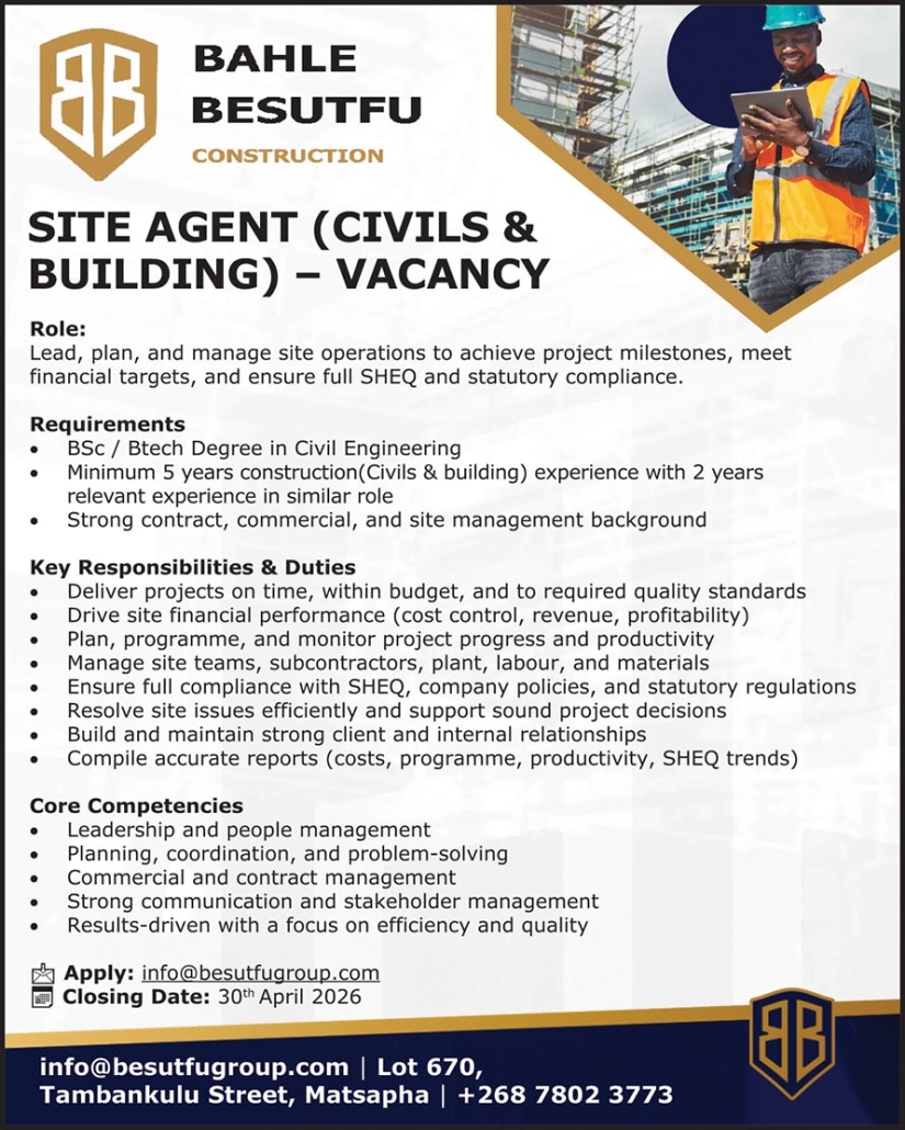 Apply: info@besutfugroup.com Closing Date: 30th April 2026