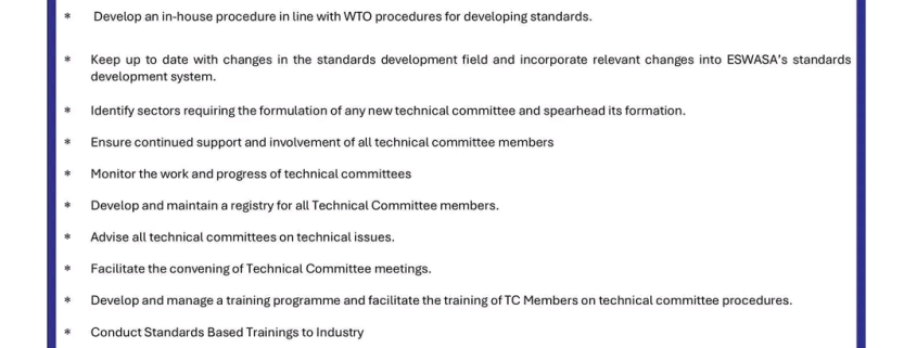 Keep up to date with changes in the standards development field and incorporate relevant changes into ESWASA’s standards development system