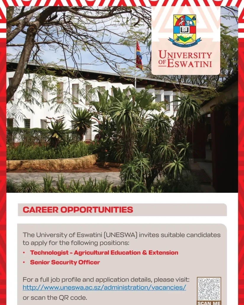 Applications with detailed CV, certified copies of academic certificates, academic transcripts and names and current email addresses of three referees should be sent to: recruitment@uneswa.ac.sz
