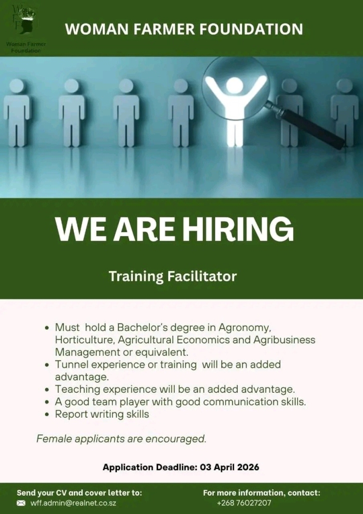 Send your CV and cover letter to: wff.admin@realnet.co.sz